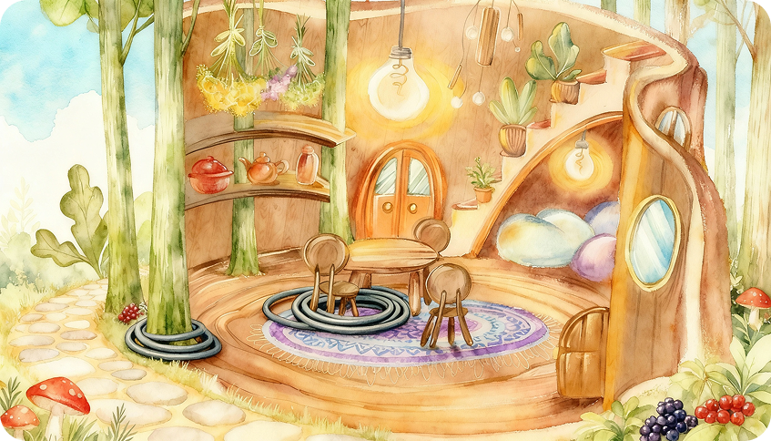 Kolory są ciepłe i stonowane, kształty miękkie i organiczne, a materiały — naturalne: drewno, len, glina, mech.